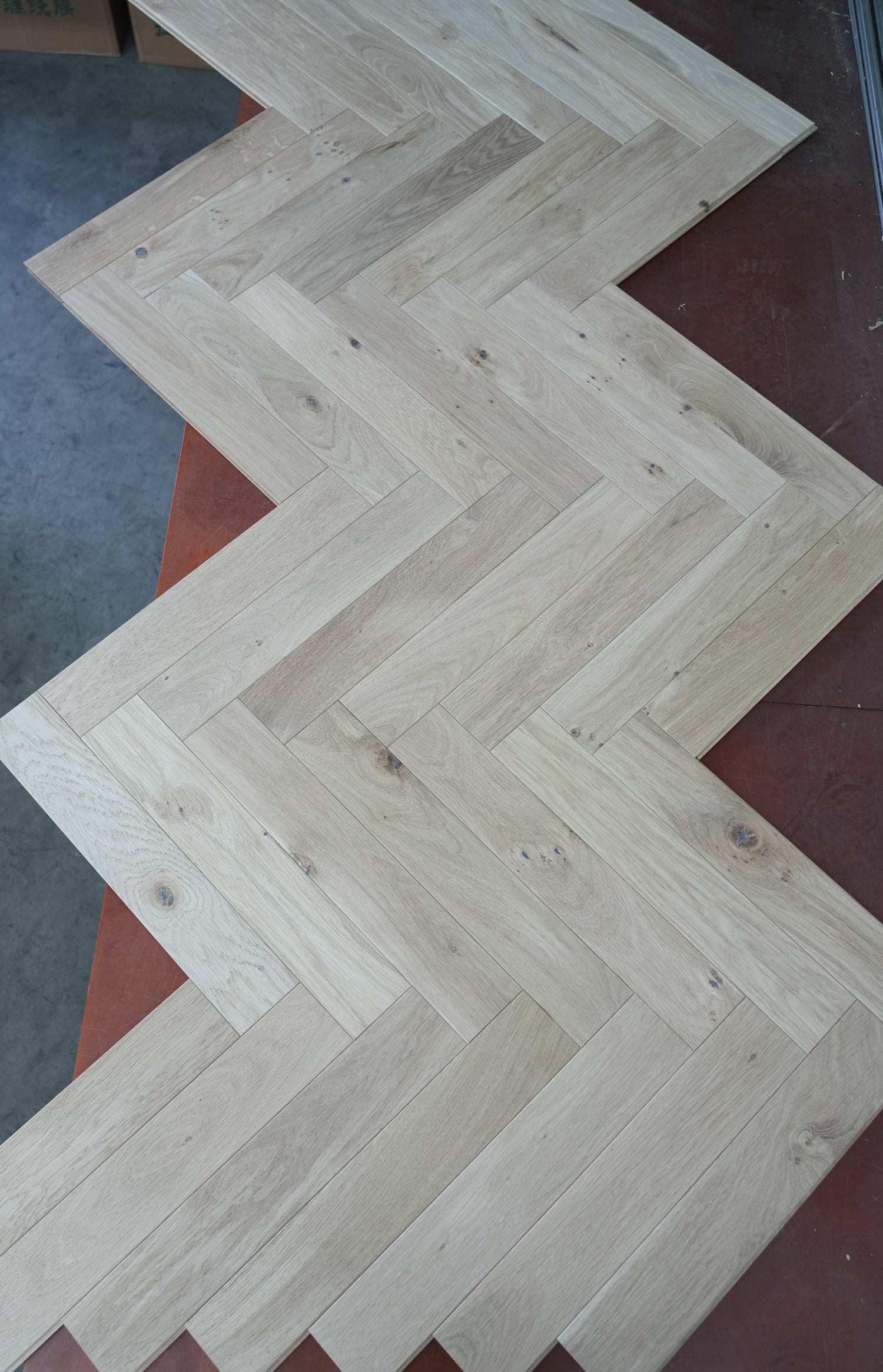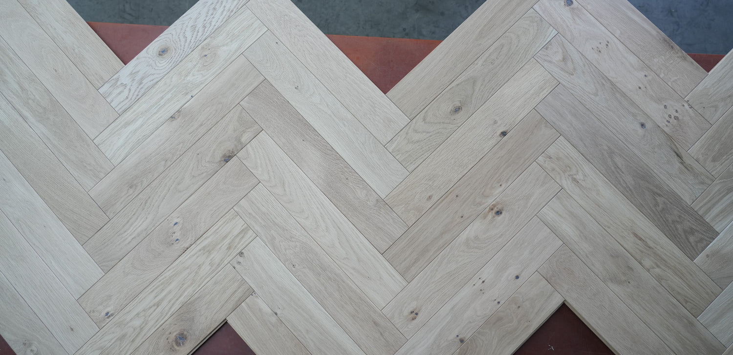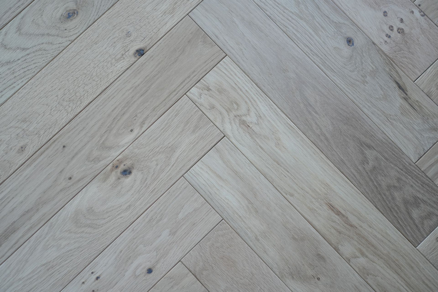 Et naturligt, flot og ubehandlet sildebensparket i massiv eg, som du kan sætte dit eget præg på.